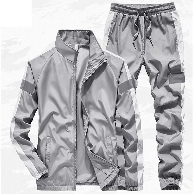 New Tracksuit Men Two Piece Clothing Sets Casual Reflective Jacket+Pants men`s Sportswear Gym Jogge