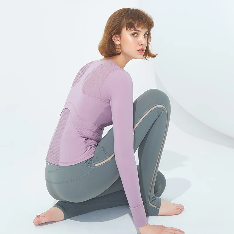 TOP Women Yoga Tops Shirts Ladies Girls Full/Long Sleeves Sportswear Training Professional Fitness Gym